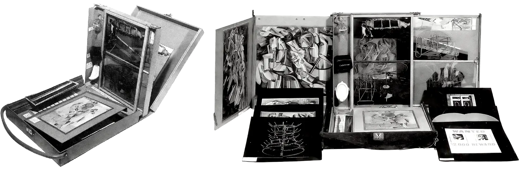 Dans une boîte dépliante portative, Marcel Duchamp a réuni ses œuvres majeures – une photographie du Grand Nu descendant l’escalier, une miniature de La Fontaine (Urinoir)… Comme une invitation pour le collectionneur à partir au bout du monde avec le musée idéal de l’artiste.
